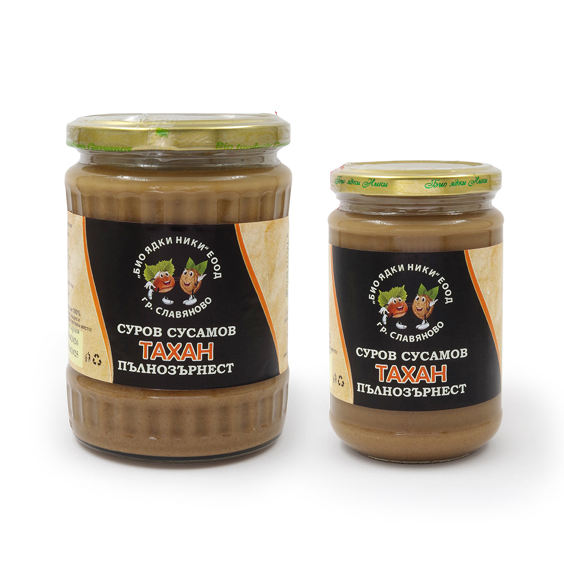 Пълнозърнест, 100% суров тахан от небелен сусам – богат на фибри, калций и ценни микроелементи. С наситен вкус и леко горчиви нотки, идеален за почитателите на натурални и питателни храни. Без добавки, без термична обработка.