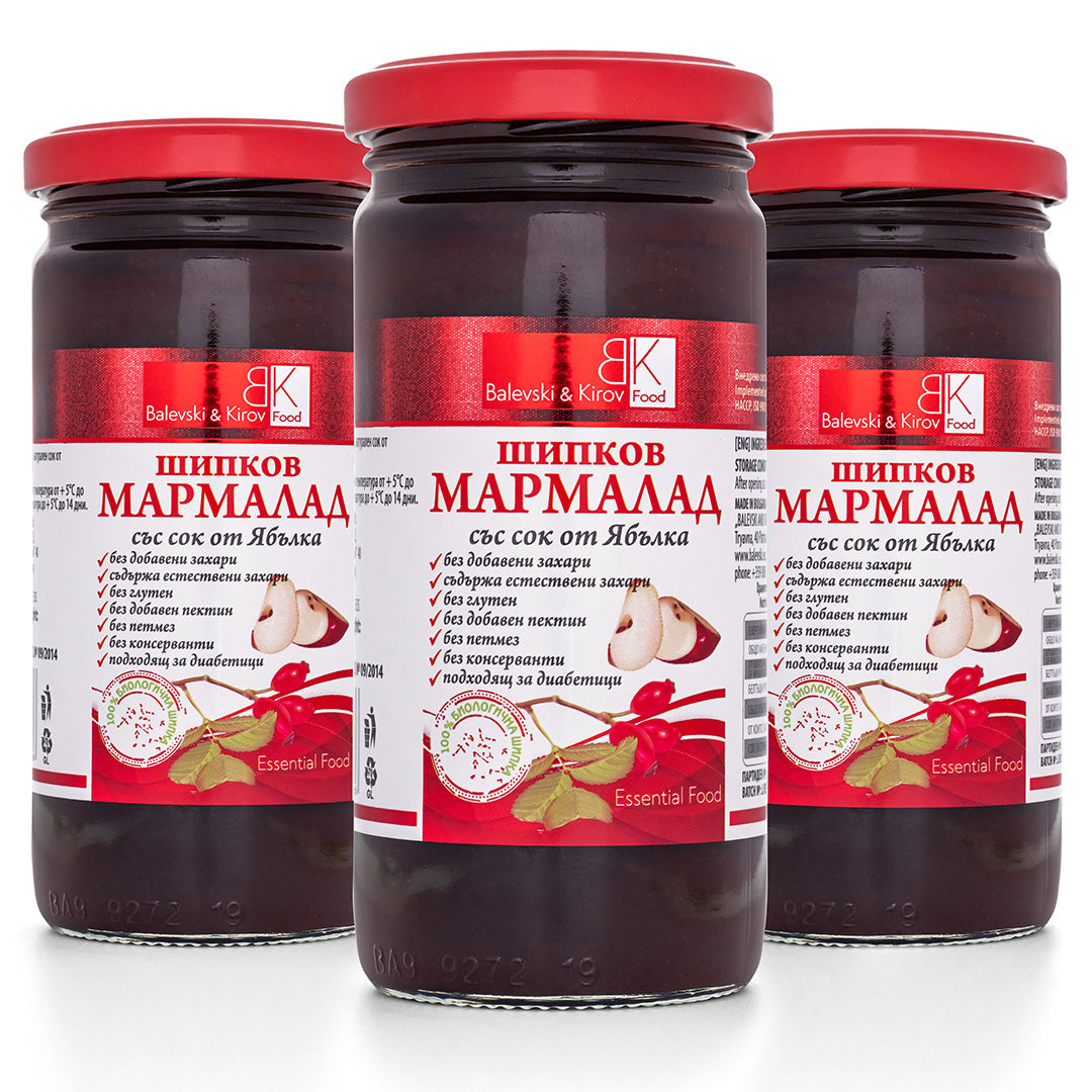 3 броя Шипков мармалад със сок от ябълка без захар . - 100% биологична шипка