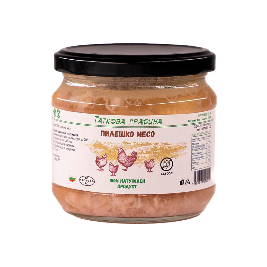 Това стерилизирано **пилешко месо без сол и подправки** е специално създадено за захранване на бебета и малки деца. Подходящо за деца над 6 месеца или според препоръка от педиатър.